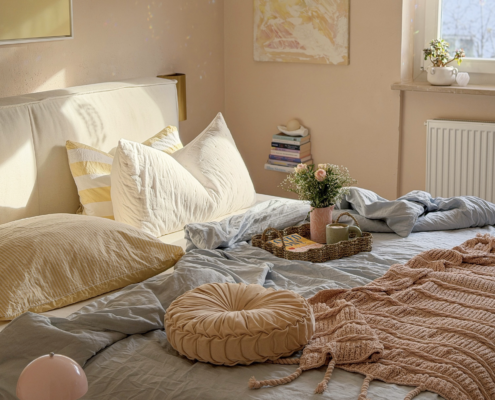 Du wirst sehen: Plötzlich lädt dein Schlafzimmer dich nicht nur zum Schlafen, sondern auch zum Entspannen, Lesen oder Träumen ein. Und ganz ehrlich: Gibt es etwas Schöneres, als sich jeden Abend aufs Zubettgehen zu freuen?